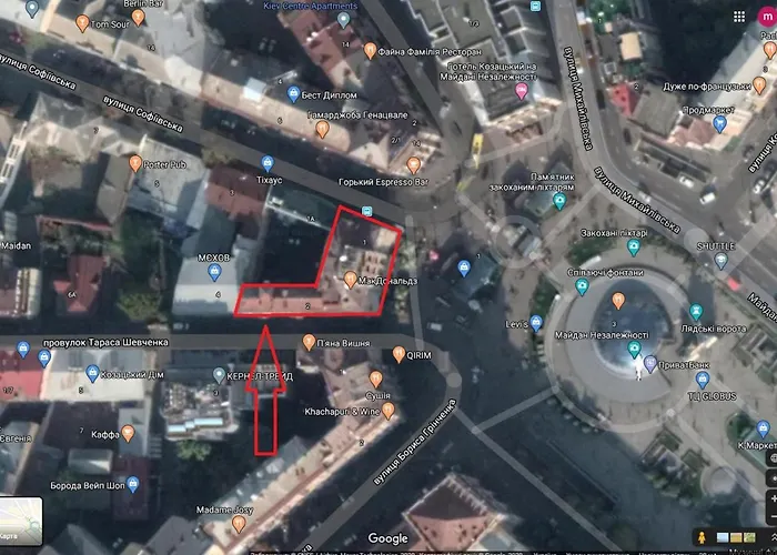 Нулевой километр Украины находится вблизи апартаментов, а Андреевская церковь — на расстоянии 1 км. До Музея истории Украины во Второй мировой войне можно добраться за 15 минут на авто, а до аэропорта Киев им. И. И. Сикорского расстояние составляет 5 км. В 5 минутах пешей прогулки расположилась площадь "Майдан Незалежности".